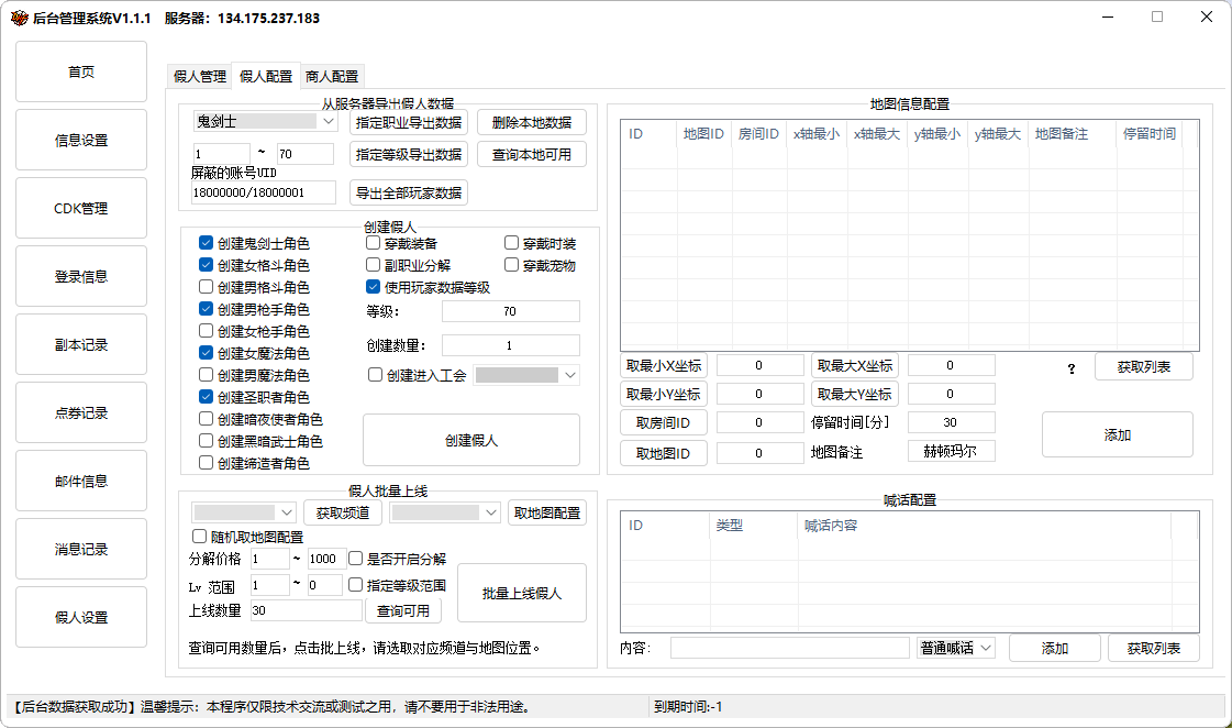 标准套餐:588元=高防云服务器,商业登录器,版本,GM工具后台,高速下载器,游戏内站街假人,自助充值发卡系统。(版本不满意可以免费更换版本库内任意版本)支持同时在线300人,下个月服务器续费每月150,