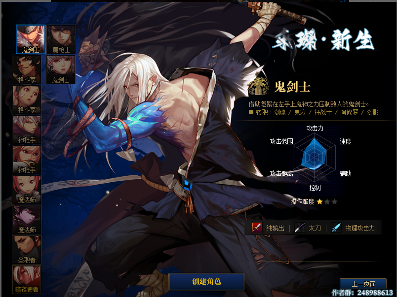 女鬼剑士:驭剑士,契魔者,流浪武士,暗殿骑土,刃影