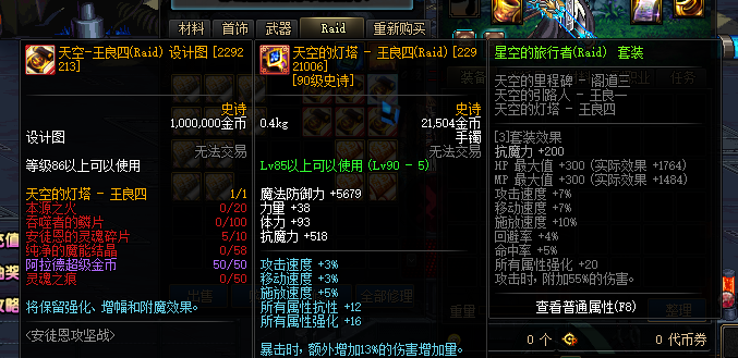 首饰从Raid90A升级为黑桃和守护龙的庇护装备