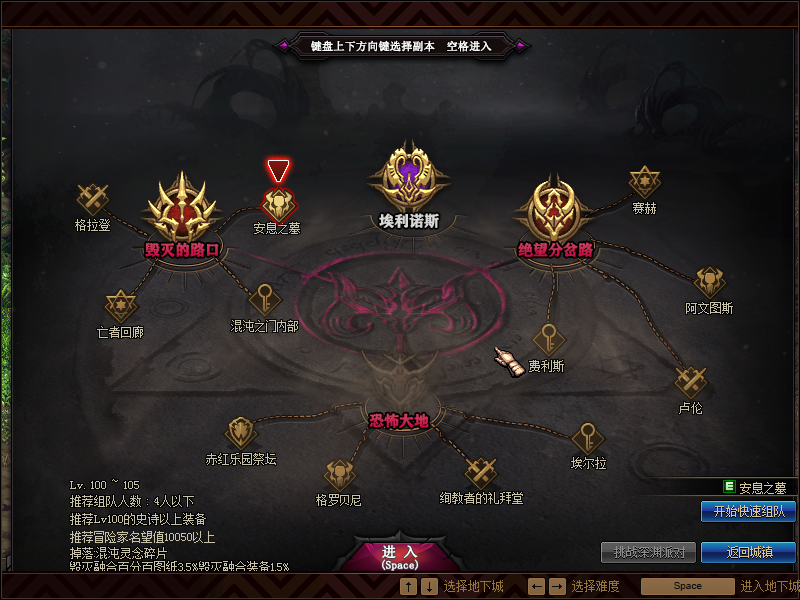 团队副本(每次进入需要5张安图恩门票):安图恩攻坚战 攻坚战难度较高,建议组队前往,单刷建议武器红14以上,固伤职业锻7