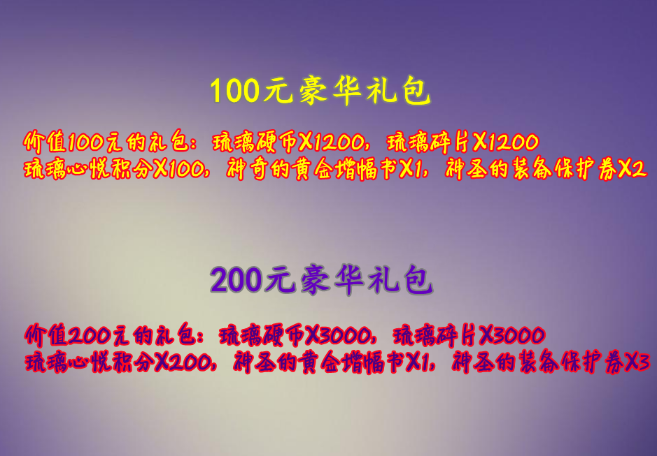 每天晚上9点发在线福利:琉璃硬币x5 琉璃碎片x10 金币100w 赛利亚的幸运x10 透明x50 深渊票x100