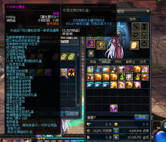 疲劳156点黑钻赠送468点(黑钻商城购买500点券30天)新手物品尽量使用代币购买