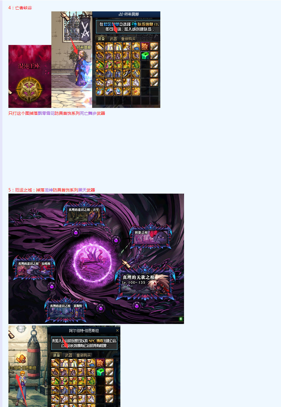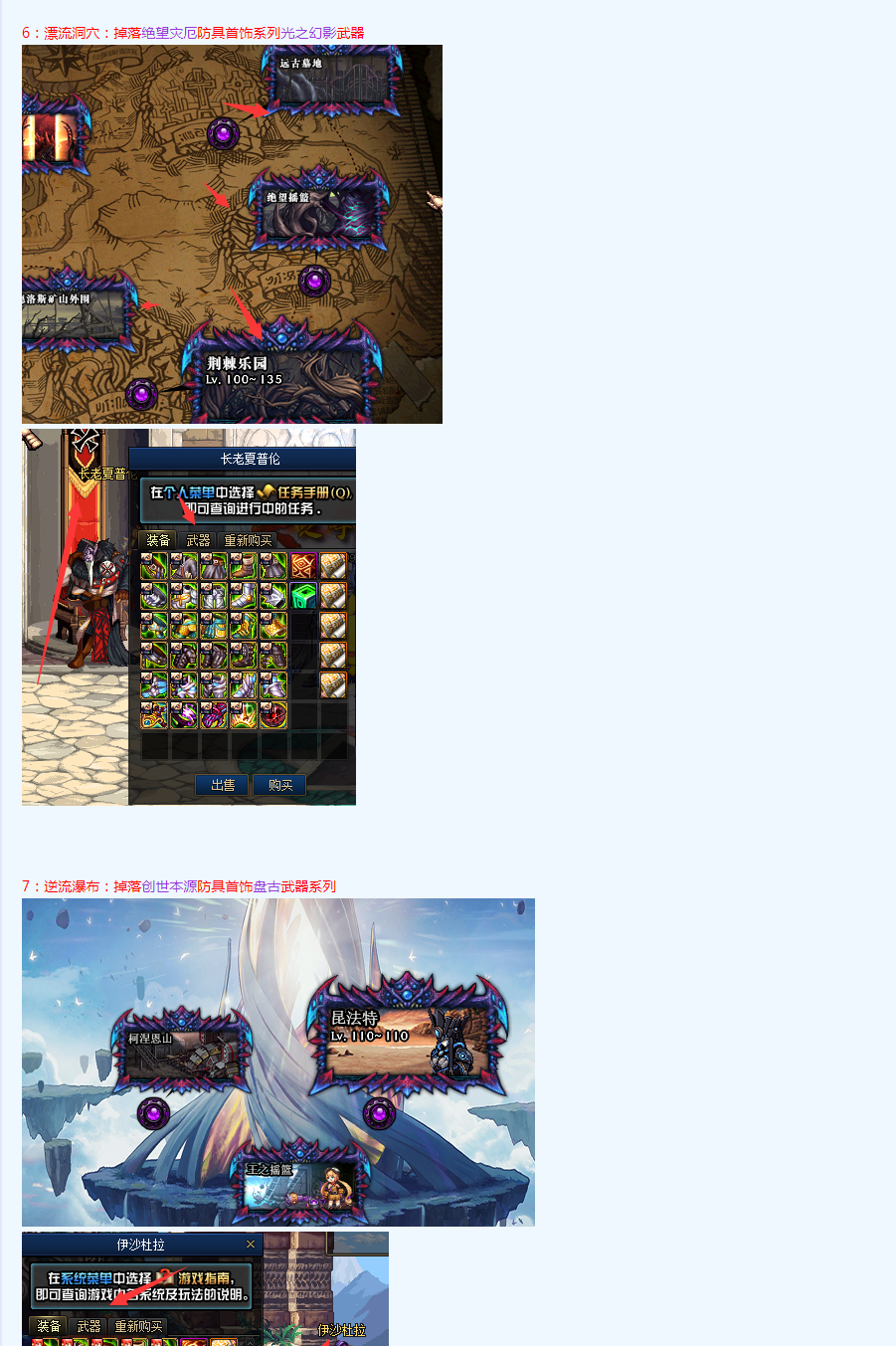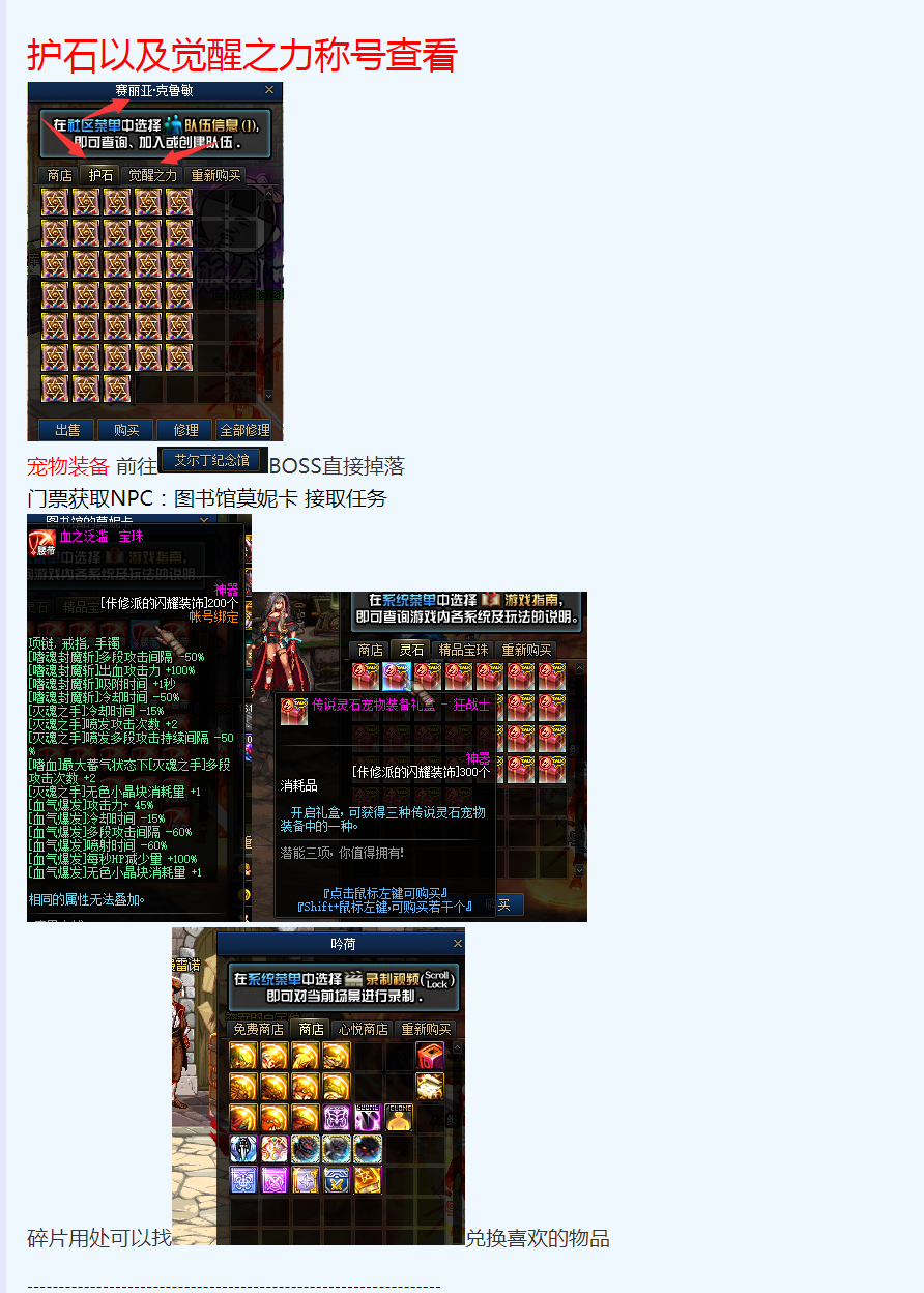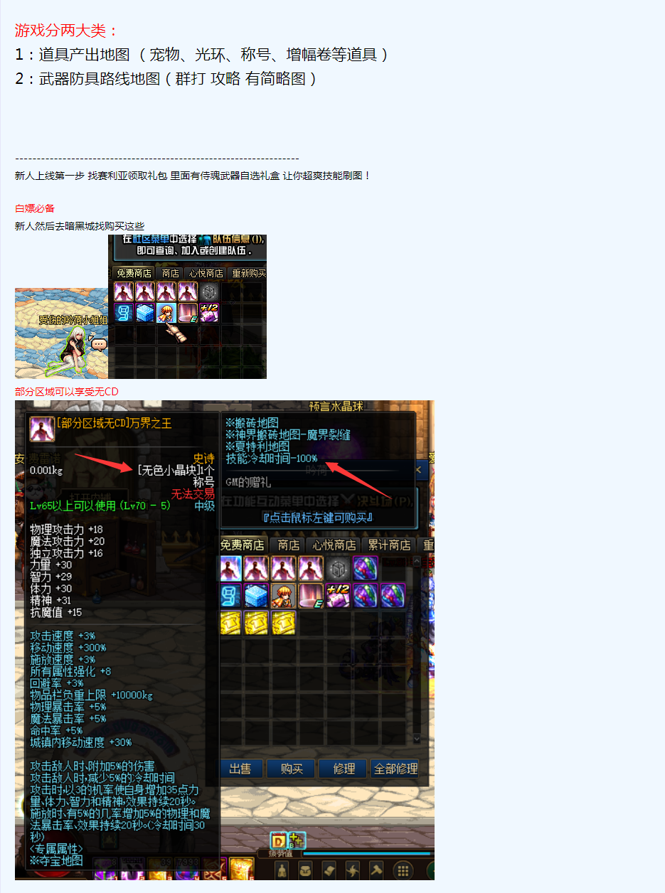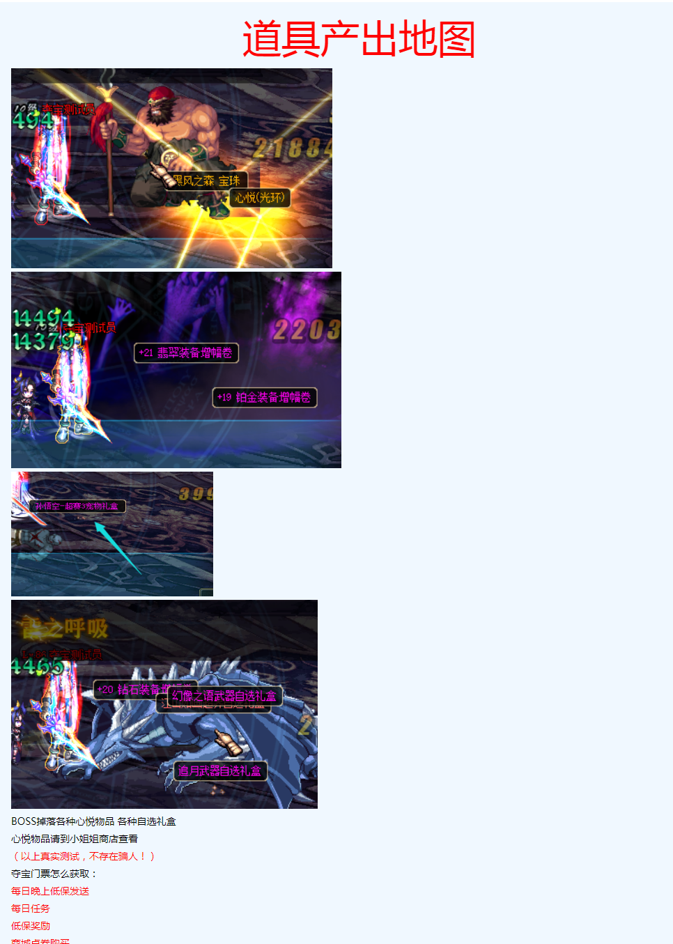 1:道具产出地图 (宠物、光环、称号、增幅卷等道具)