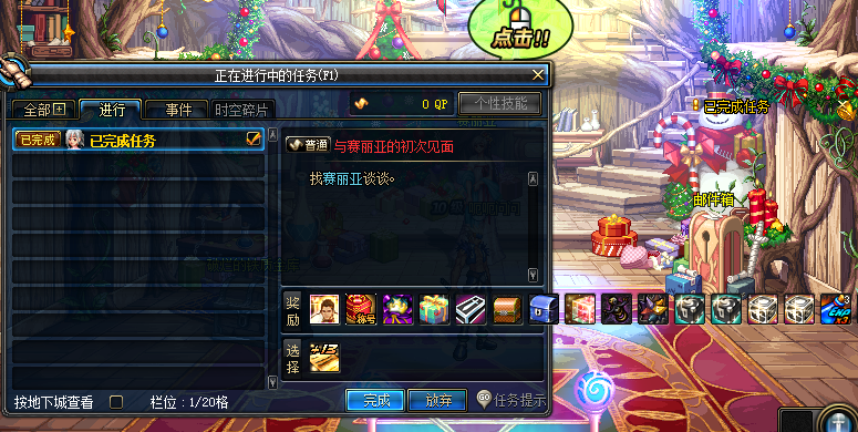 完成与赛利亚的初次见面任务,有满级经验礼包